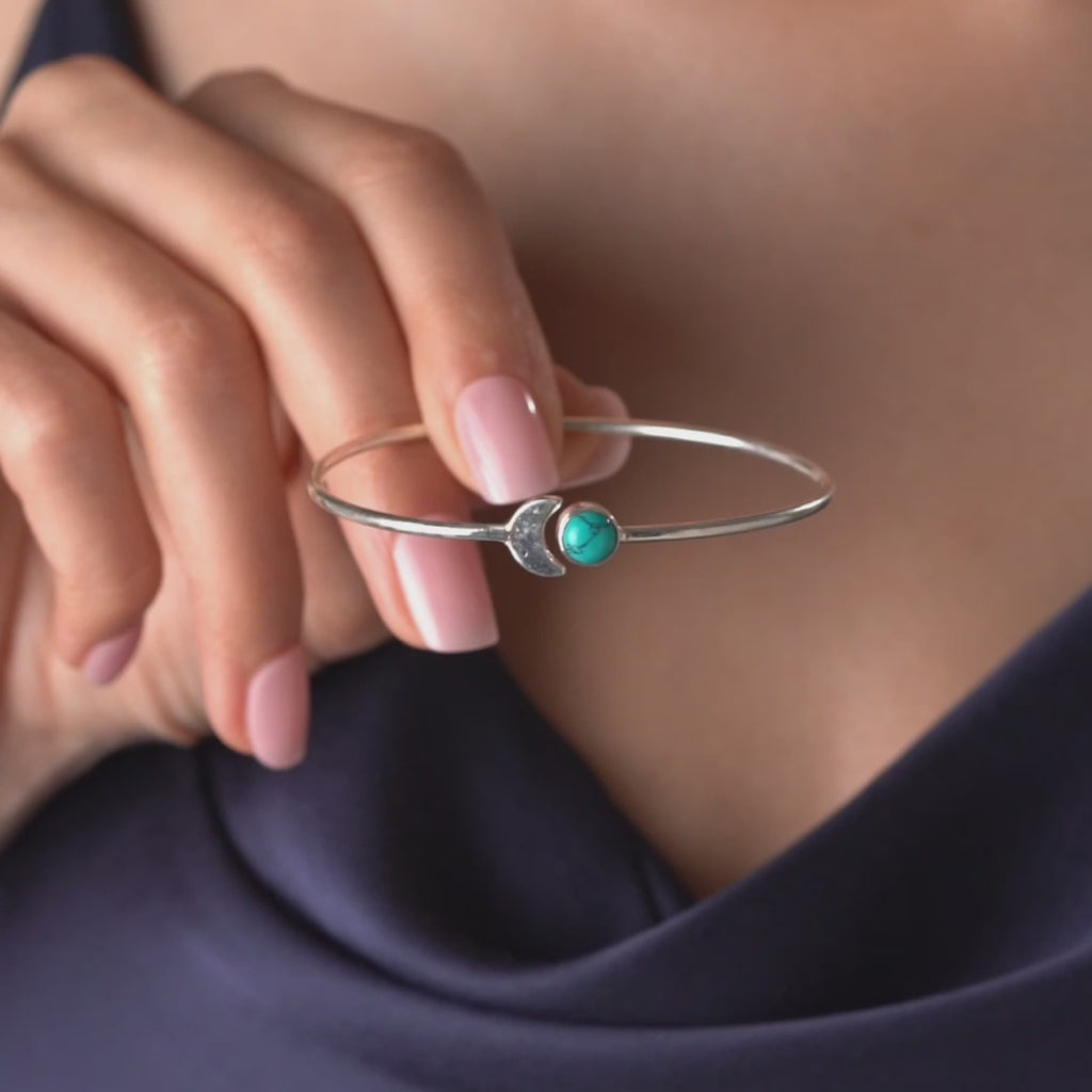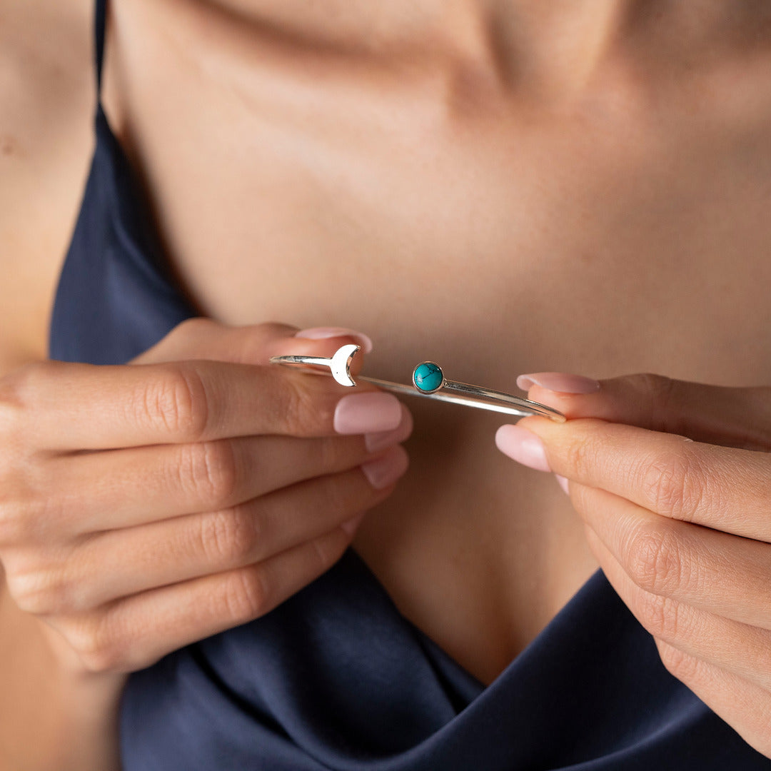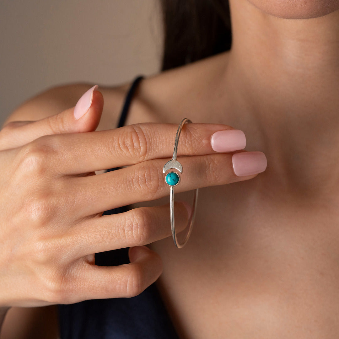 Yüksek kaliteli 925 ayar gümüşten üretilmiş ve gerçek İran firuze taşıyla süslenmiş bu zarif bileklik, minimal ama anlamlı tarzıyla öne çıkar.
